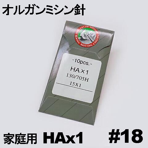 【18号】【メール便可】オルガン家庭用ミシン針【HAx1】#18(厚物用 / 18番手) 10本入りHA×1