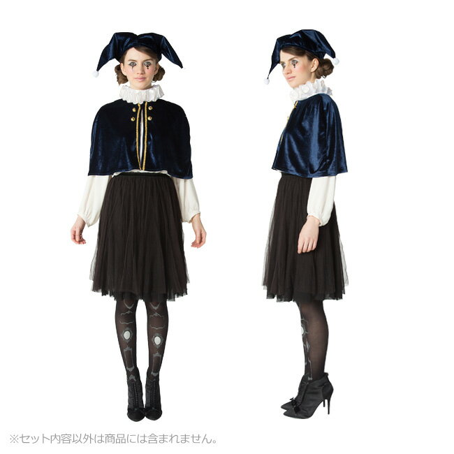 ●セット内容● 帽子、付け襟、マント ●素材● ポリエステル100% 洗濯不可、塩素系漂白剤による漂白不可、アイロンは中温で当て布使用、ドライクリーニング不可 ●サイズ● 対応身長 レディース:155cm〜165cm、バスト:〜約90cm、ウエスト:〜約70cm、ヒップ:〜約96cm 着丈約41cm、頭囲48〜58cm 付け襟:後ろリボン、マント:前開き面ファスナー、裏地なし ※コスチュームとしてのご提供のため、 着用に支障の無い程度の小さな汚れやツレが見られる場合がございます。